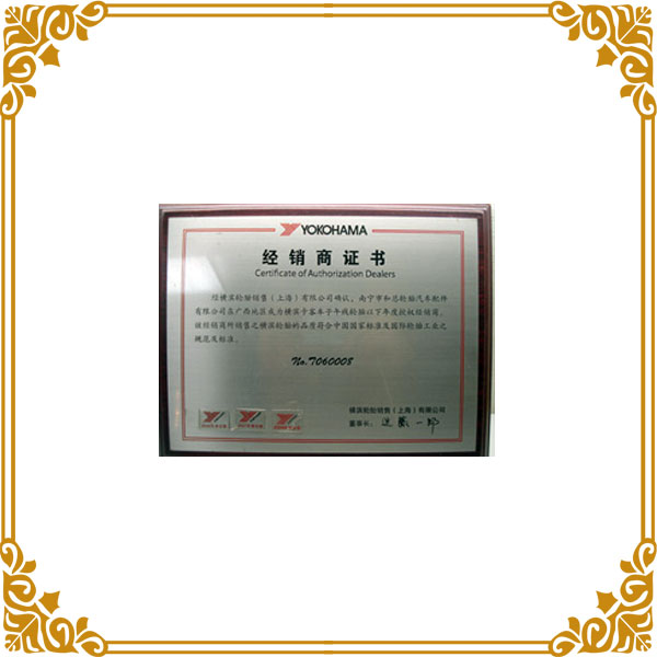 橫濱經(jīng)銷商證書